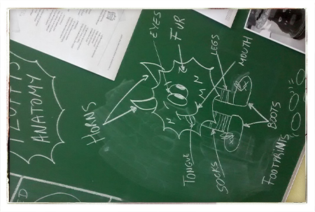 Estábamos en eso cuando oímos un ruido en detrás de una de las puertas. El detective Detective acercó la oreja mientras los demás conteníamos la respiración. El ruido procedía de detrás de esa puerta, sin duda. Nos preparamos por si acaso era el monstruo, y cuando el Detective abrió la puerta… un gato salió corriendo, pero no un gato cualquiera ¡un gato negro con un gorro de bruja! Seguro que era alguna bruja transformada… tendremos que investigarlo con profundidad.