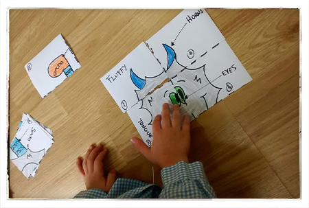 Al levantarnos, vimos que efectivamente era la madriguera del Monstruo de las Macetas. A parte de hojas, ramitas y bichitos, también había alguna que otra silla y cojines a modo de nido. Tenía además un montón de macetas. De repente, apareció una calabaza gigante… ¡manos y piernas! Los detectives estuvieron rápidos y le lanzaron la Red Cazamonstruos con la buena puntería de atraparlo a la primera. Fue entonces cuando vimos que era un monstruo disfrazado con una calabaza, pero tampoco era el monstruo que buscábamos, ¡sino el Monstruo de las Bromas! No paraba de reírse de nosotros, y los detectives decidieron atraparlo en el Frasquito de Cristal. Cuando sellamos el frasco… algo se movió detrás de las macetas. La detective Elsa llevó a su bichito hacia allí y cuando llegó el Monstruo de las Macetas salió de su escondite. Se le veía asustado y nos intentaba decir algo, pero el idioma de los Monstruo solo lo conocen los Gamusinos. Menos mal que al detective Sugus se le ocurrió contar un chiste y así apareció un Gamusino. El nos tradujo que el Monstruo de las Bromas había despertado con la calabaza en la cabeza al Monstruo de las Macetas. Se había asustado tanto que salió corriendo de su madriguera, y cuando vio todas esas calabazas por el jardín y por dentro de la casa, las había roto todas. Al tranquilizarse, se había dado cuenta del desastre que había montado y corrió a esconderse en su madriguera.